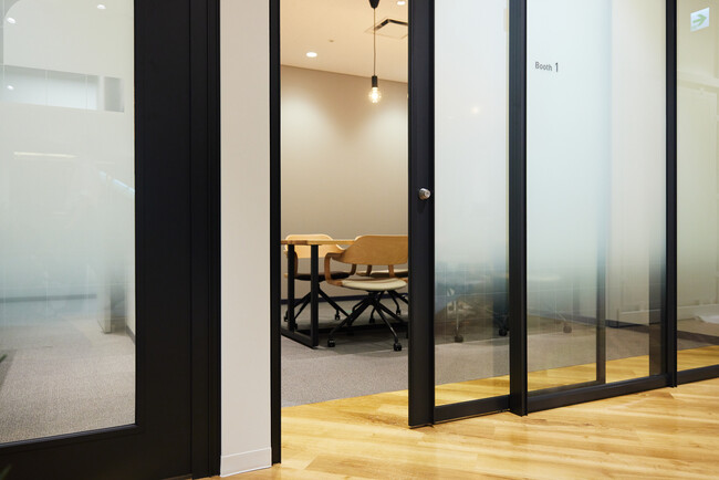ビル1階であるとともに、店舗内は一部ブースにスライドドアを採用し、さらにブース内も一定のスペースを確保しています。