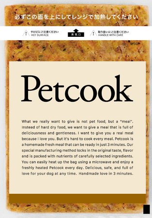 愛犬の健やかなからだ作りをサポートするために必要不可欠な3つの食のこだわり(安全・おいしさ・継続)を一切の妥協を許さず追求した、“完全食品認可”フレッシュペットフード「Petcook」がついに、正式販売を開始いたします。