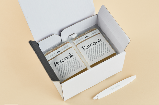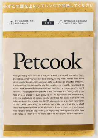 開発スタートから約2年半、獣医師、管理栄養士、食品業界の専門家など多くの方々の協力のもと、何度も試作と研究を重ねた結果、ペットフードにおいて難易度の高い完全”食品”認可の「Petcook(ペットクック)」が誕生しました。