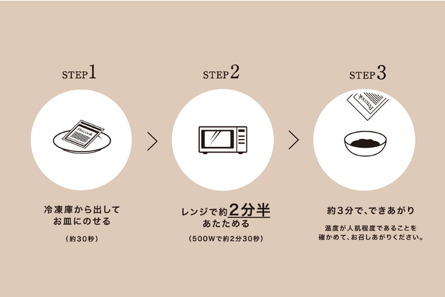 食品では認められていない雑貨基準のものは1成分たりとも使用せず、従来のドライフードとは異なる特許取得の技術を採用したこだわり製法にて、新鮮な食材本来の旨みや香り、栄養素をパックにぎゅっと閉じ込めました。