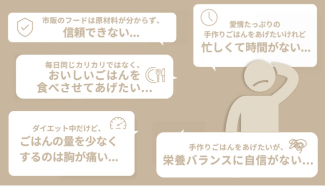 代表自身の愛犬に関する数々の悩みを、食事を通して解決できた事をきっかけに2021年春から開発をスタートした「Petcook」は、ペット栄養管理士や獣医師などの専門家の協力のもと、1000人以上の愛犬家の悩みの声を反映し約2年半もの開発期間を経て誕生。