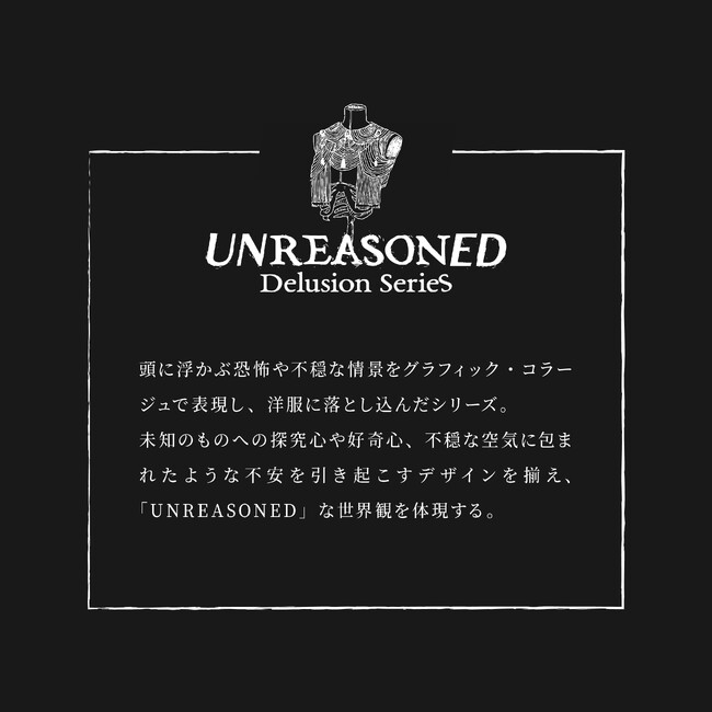 UNREASONED Clothesでは、イラストレーションを主軸にした「Bare Series」とグラフィック・コラージュを主軸にした「Delusion Series」の2つのシリーズを展開します。