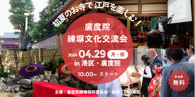 廣度院では、江戸時代から存在する貴重な練塀の解体調査を2023年9月に行い「江戸城造営関係資料集」に記された練塀の内部構造と一致することを発見しました。徳川幕府との深い関係やリサイクル文化の江戸時代における考えられた構造であることなど、これまで分かってきた調査内容を発表します。また、貴重な練塀の内部構造を特別公開します。飲食事業者による屋台を出店し、歴史を学ぶだけではなく訪れる皆さまが交流できるよう、境内の庭園に休憩処を設置します。