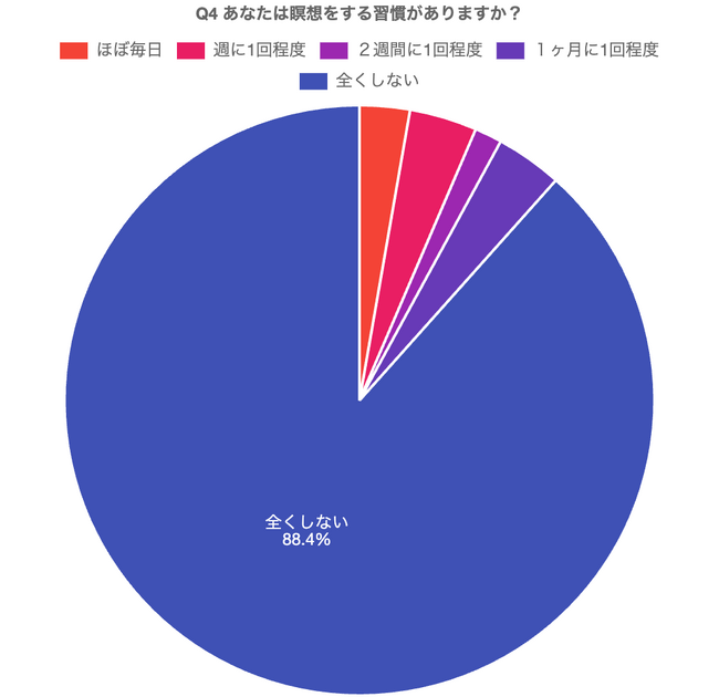 国民の10人に1人以上が瞑想実践者(1ヶ月に1回以上)であることがわかりました。