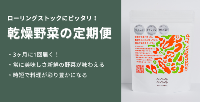 Mapion > ニュース > リリース > 【ローリングストック】3ヶ月に1回届くサービスを開始。規格外野菜を使った乾燥野菜ブランド「OYAOYA」