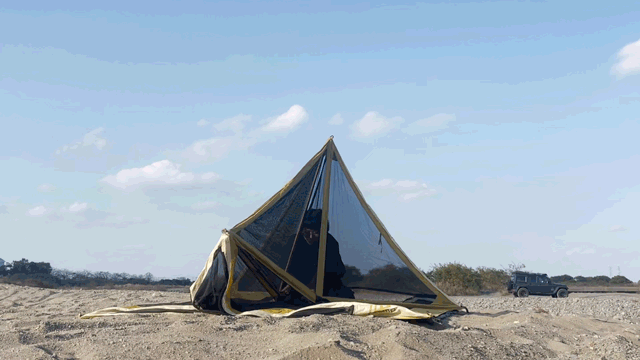ベースのテントは最速5秒ほどで出来ちゃう優れモノ...