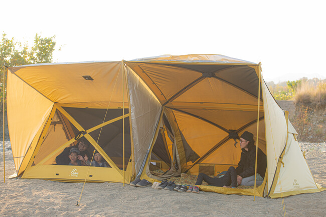 1. 設置も撤収も“超”簡単、徹底的に遊び尽くせる時短設計!今回の応援購入では専用グランドシートも付いたフルセット!