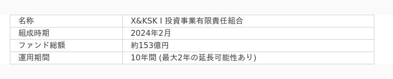 この度、X&KSKは「日本初のデカコーン創出」をミッションに掲げ、当初は150億円を目標としておりましたが、需要が予想を上回り、株式会社三井住友銀行、SBIグループ(SBIホールディングス株式会社及び株式会社SBI新生銀行)、GMOインターネットグループ株式会社、東急不動産株式会社をはじめ、金融機関・事業会社、さらには国内外の個人投資家の皆様より約153億円の資金調達を実施いたしました。