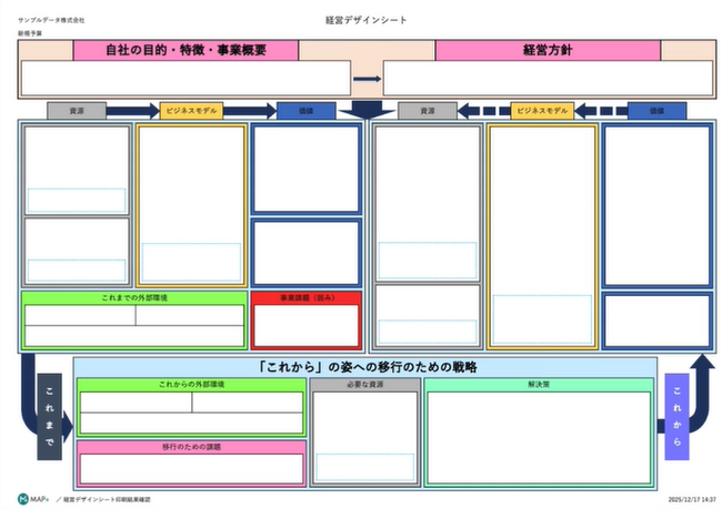 経営者の思考整理から数値検証までを一貫して支援する機能が充実 株式会社MAP経営(本社:東京都中野区、代表取締役:伊藤昌博)は、同社が開発・保守を行う経営シミュレーションシステム「 MAP経営シミュレーション+」(以下、MAP+)に、内閣府が推奨するフレームワーク「経営デザインシート」に準拠した新機能【経営デザインシート】を2025年12月22日にリリースしました。 ■経営デザインシートとは