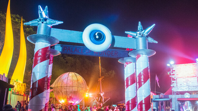 音楽からサーカス、ポールダンス、お酒なども楽しめる大人の遊び場。廃材から作られた巨大アリや、怪しいデザインの回転遊具などに囲まれたフォトジェニック過ぎる魅惑の空間。