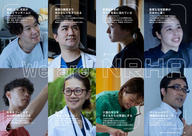 今回、NRHAの活動を社会に広く開示するため、初となる活動レポート2025 「We are NRHA」を公開しました。本レポートは、持続可能な地域医療の実現を目指して、急性期病院から在宅医療まで多岐にわたる現場で生まれた具体的な課題解決事例や多様なキャリアパスを紹介しています。
