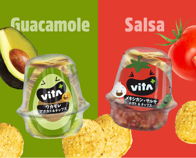 全国のコンビニエンスストアで先行販売、今後ECサイトでの販売予定もあり。併せて人気フレーバー「vita+ワカモレ アボカド&チップス」のリニューアルも。