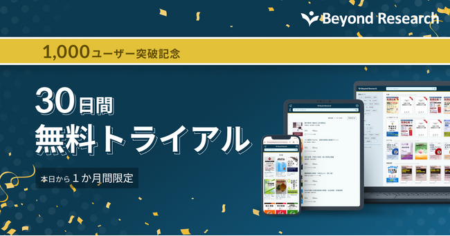 株式会社Beyond Research(本社:東京都渋谷区、代表取締役社長:上村聡)は、税務・会計関連の専門書籍をオンラインで閲覧できるサブスクリプション型電子書籍サービス「Beyond Research(https://beyondresearch.jp/)」が、2025年9月、登録ユーザー数1,000人を突破したことをお知らせいたします。