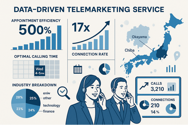 【福岡市、2025年10月】 テレアポ・インサイドセールス代行の株式会社DivWork(本社:福岡県福岡市、代表取締役:倉田直幸)は、統計学を活用した業界初の「データドリブンテレアポ」を本格展開していることを発表いたします。企業属性ごとの曜日・時間帯別アポ率集計やコール回数との相関関係分析など、これまでにない多次元クロス集計により、従来比でアポイント効率500%向上、接続率最大17倍の大幅な成果向上を実現しています。