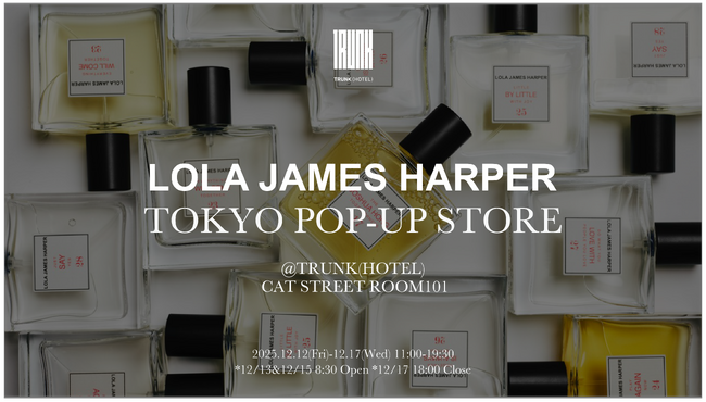 株式会社NKT(所在地:東京都港区/代表取締役:川口 高輝)は、2025年12月12日(金)~12月17日(水)の期間、フランス発のライフスタイルブランド「LOLA JAMES HARPER(ローラ ジェームス ハーパー)」のPOPUPを、渋谷区・神宮前のTRUNK(HOTEL) CAT STREET にて開催いたします。