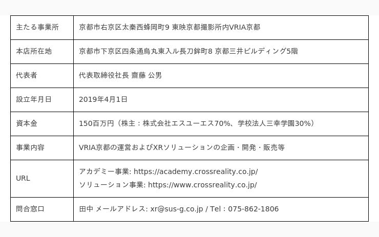 VRイノベーションアカデミー京都(以下「VRIA京都」又は「当校」)を運営する株式会社クロスリアリティ(本