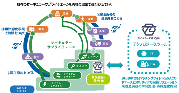 サイクラーズグループのトライシクル株式会社(本社:東京都品川区、代表取締役CEO山田 晃一、以下、「当社」)と豊田通商株式会社(本社:名古屋市中村区、代表取締役 今井斗志光、以下、「豊田通商」)は、リユース事業の取組の拡大に向け12月1日付けで業務提携を締結しました。