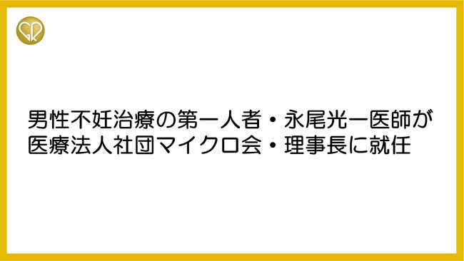 医療法人社団マイクロ会(所在地:東京都中央区、以下マイクロ会)は、2025年4月1日付で、男性不妊治療の第一人者である永尾光一医師が新たに理事長に就任したことをお知らせいたします。