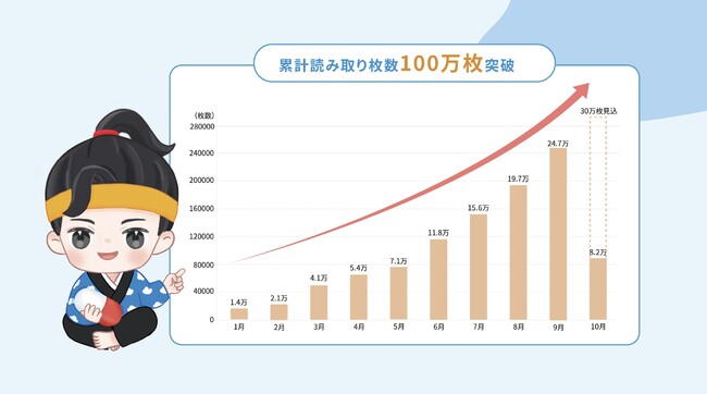 2022年1月のサービスリリース以降、全国の調剤薬局様への導入が進み、2022年10月末には月間の読み取り枚数が30万枚を超える見込みでございます。