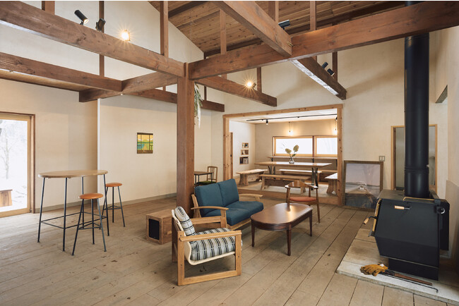 備品:全室床暖房、ダイニングキッチン、冷蔵庫、調理器具、ハンドドリップセット、シングルベット×4、ソファー、テーブル、Bluetoothスピーカー、焚き火台