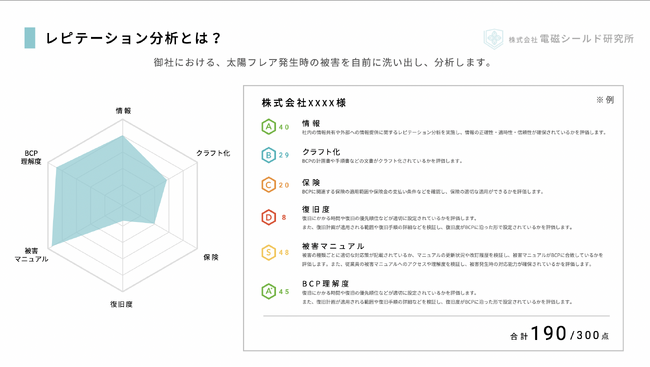 株式会社電磁シールド研究所は、BCP(Business Continuity Plan)策定のコンサルティングサービスを提供する新規事業を開始しました。本サービスは、企業のリスクマネジメント強化に向けて、太陽フレア襲来に対するリスク分析からマニュアル策定までの一連のプロセスを支援するものです。多くの企業が地震や津波、洪水などに対するBCPに取り組んでいますが、日本においては太陽フレアに対する意識はまだまだ低い現状があります。また、2025年に懸念されている太陽フレアに対して重要性を認識しつつも、その対策の策定には膨大な時間やリソースが必要です。本サービスでは、電磁波領域に精通する専門家が、顧客のニーズに合わせたBCP策定をサポートします。企業の事業継続に向けたリスクマネジメント強化をお考えの方は、ぜひお問い合わせください。