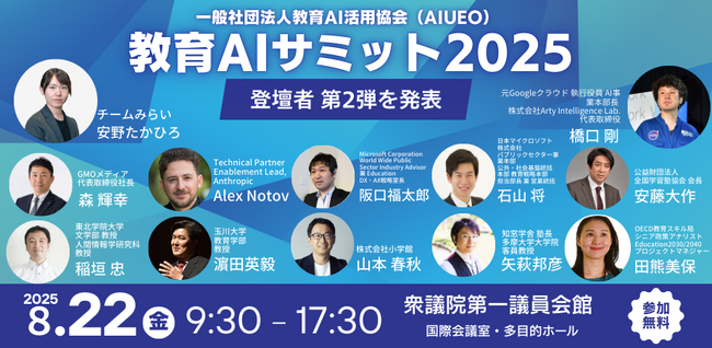 (一社)教育AI活用協会、教育×AIをテーマにした【教育AIサミット2025】出演者第1弾を発表