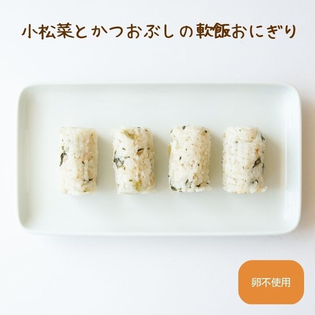 生後12か月ころからあげられる「小松菜とかつおぶしの軟飯おにぎり」は、