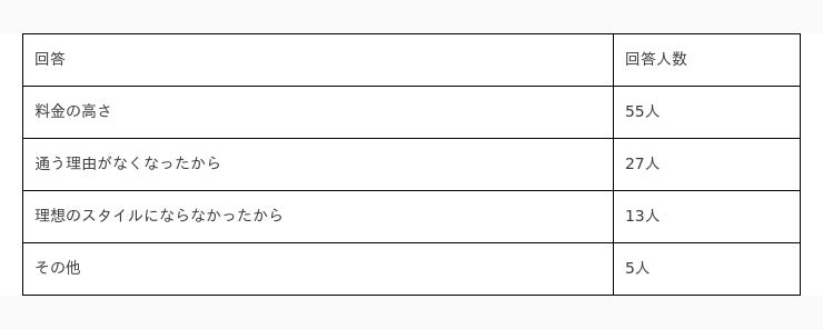 「料金が高かった(55%)」を筆頭に「通う理由がなくなったから(27%)」が第2位となっています。「理想のスタイルにならなかった(13%)」と、眉毛サロンの施術に不満をもってやめた人もいるようです。