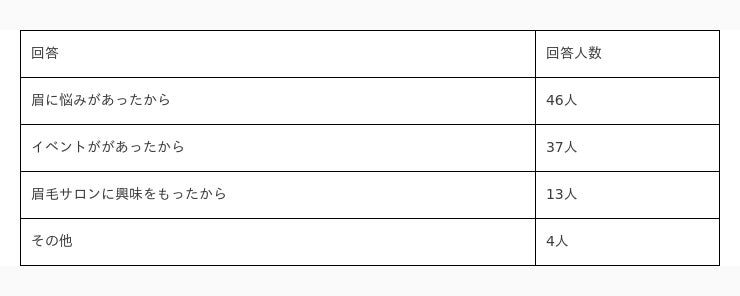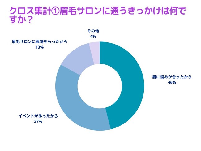 眉毛サロンに通うきっかけは「眉に悩みが合ったから(46%)」、「イベントがあったから(37%)」、「眉毛サロンに興味をもったから(13%)」ということが判明しました。