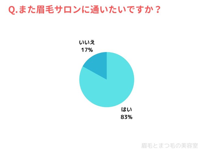 眉毛サロンをやめたけれど、また通いたい人は全体の83%。もう眉毛サロンに通うことを検討していない人は17%となりました。