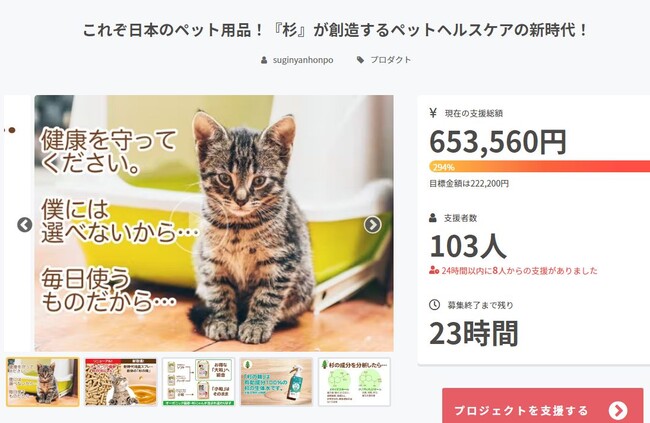 Mapion > ニュース > リリース > オーガニックペット用品の「杉にゃん」がクラウドファンディングで290%超え!