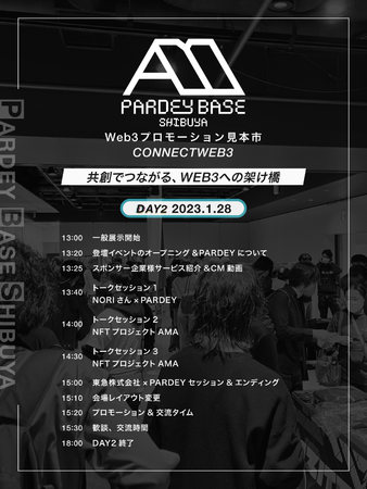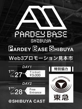 今回で3度目の開催となるPARDEY BASE SHIBUYAでは、「WEB3参入に興味がある、NFTを活用してどんなことができるか知りたい」という事業者様や担当者様を対象に、『~WEB3プロモーション見本市~』という要素を加え、WEB3 / NFTに特化したイベントを開催いたします。