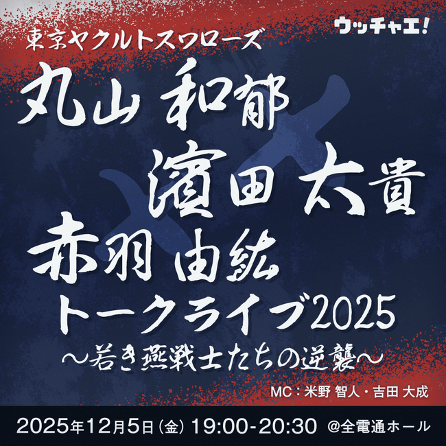 Mapion > ニュース > リリース > 「東京ヤクルトスワローズ丸山和郁×濱田太貴×赤羽由紘トークライブ2025~若き燕戦士たちの逆襲~」開催決定!