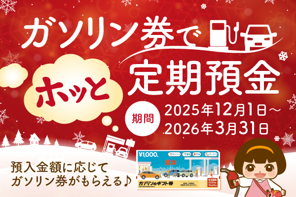 福島銀行(取締役社長 鈴木 岳伯)は、12月1日(月)より「ガソリン券でホッと定期預金」の取扱いを開始いたしますので、お知らせします。