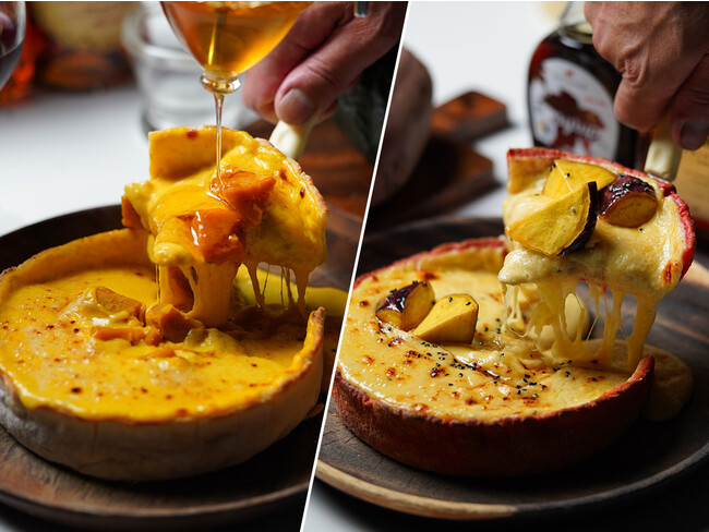 《秋~冬季限定》たっぷりチーズの中にカボチャが入った「パンプキンシカゴピザ」と自家製大学芋をふんだんに使った「さつまいもシカゴピザ」を期間限定で販売いたします!10月1日~12月末日まで