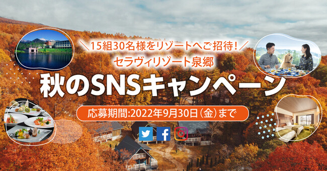 日本各地でリゾートホテルを運営する株式会社セラヴィリゾート泉郷(本社:東京都豊島区、代表取締役:浜口 憲一/以下、セラヴィリゾート泉郷)は、各ホテルの公式SNS(Instagram・Facebook・Twitter)を統合させていただきます。この機会に「秋のSNSキャンペーン」を実施いたします!
