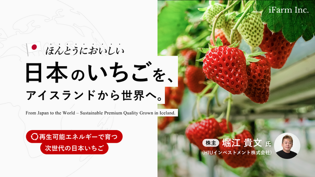 「本当においしい「日本のいちご」をアイスランドから世界中の人へ届ける」 ~再生可能エネルギーで育つ次世代の日本いちご~ アイファーム株式会社は、株式会社CFスタートアップスを取扱業者として、株式投資型クラウドファンディングを次の日程で実施します。 事前開示日:11月21日(金)/ 募集期間:11月25日(火)~12月15日(月)