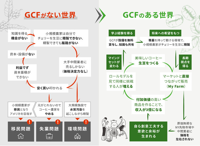 今回の調達を通して、GCFは今後も、生産国の社会課題の解決と、先進国などのコーヒー生豆輸入国が低環境負荷かつ倫理的な商品を購入できるプラットフォームの構築を目指し、事業開発を加速していきます。