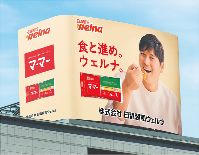 パスタカテゴリーNo.1(※1)の「マ・マー」ブランドのパスタ × 笑顔の大谷選手 日清製粉グループの株式会社日清製粉ウェルナ(取締役社長:岩橋 恭彦)は、神田錦町本社ビルの新たな屋上広告看板を本日3月16日(月)より公開しました。 ■ 屋上の広告看板に大谷翔平選手が登場