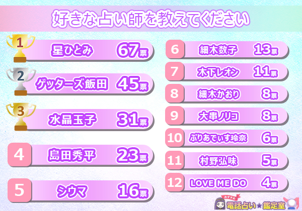 あなたの好きな占い師はいったい何位にランクインしていますか?