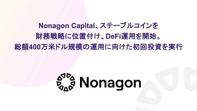 Nonagon Capital、ステーブルコインを財務戦略に位置付け、DeFi運用を開始。総額400万米ドル規模の運用に向けた初回投資を実行