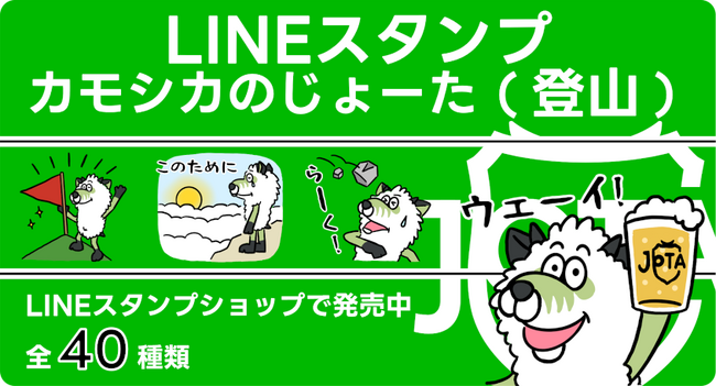 カモシカのじょーたのLINEスタンプ第二弾、トレーニングver.に続き、登山ver.をリリース
