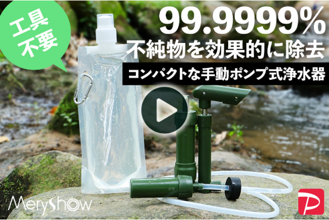 メリショー・ジャパン 株式会社はポンプ型携帯浄水器【GreeShow GS-287】を、2022年11月にクラウドファンディングサイト「GREEN FUNDING」にて先行予約販売を開始しました。
