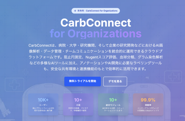 カーブジェン株式会社(本社:東京都渋谷区、代表取締役:中島正和、以下「当社」)は、クラウドベースAI画像解析プラットフォーム「CarbConnect(R)」の組織向け新プラットフォーム 「CarbConnect for Organizations」 を正式リリースしたことをお知らせいたします。