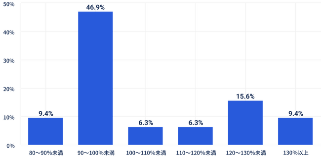 売上維持率は90~100未満の企業が46.9%と最多になっています。グローバルで合格基準とされる120を超える企業も25.0%存在していますが、まだまだ伸びしろがありそうです。