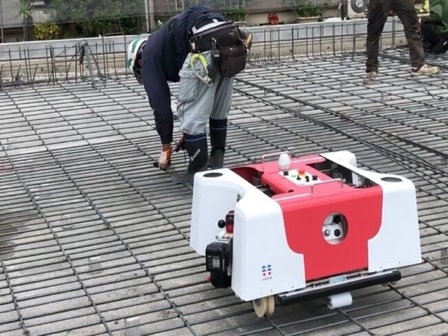 建設現場の生産性向上と作業者の負担軽減を目的とした、人とともに働き、土間や鉄筋コンクリート 製の床などの単純な結束作業から職人を解放し、より高度な作業への注力を可能にする「職人力発揮 ツール」として現場を支える自走型協働ロボット