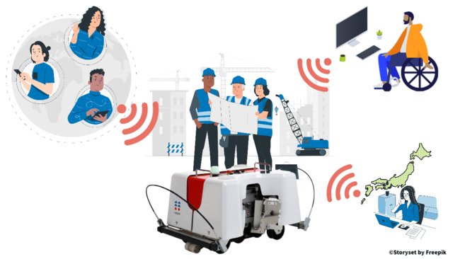 現在、現場作業員が作業を止めて対応していたレーンチェンジや方向切り替えなどのロボット操作業務を遠隔で実施することで、現場作業を削減すると共に、建設業界に馴染みがない方でも遠隔にて現場作業支援が可能な仕組みづくりに取り組みます。