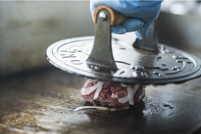 SHOGUN BURGERといえば和牛粗挽きパティ。しっかりとした食べ応えと食感が特徴で、和牛のスネ肉を鉄板の上でスマッシュして牛の旨みを存分に活かしたパティを使用しています。