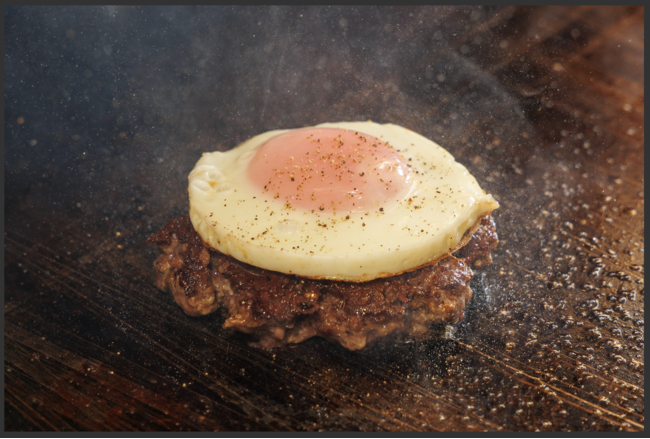 卵は“田中農場”さんから雑味の少ないとても濃厚な卵を使用しております。和牛の上にとろ~りと溶ける半熟卵はパティとの相性も良く、絶品です。
