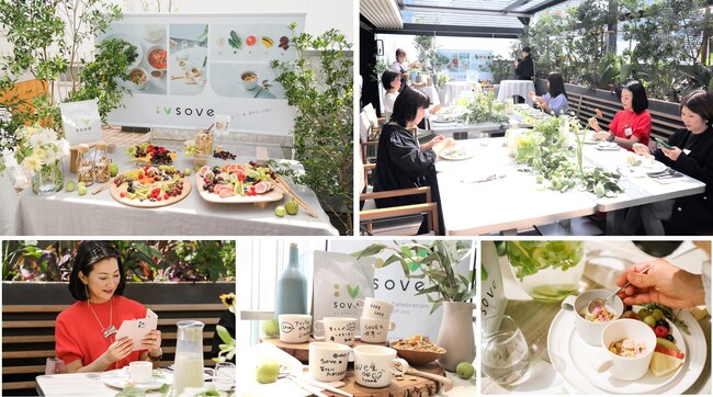 当日は、野菜料理家の庄司 いずみ 様、エグゼクティブシェフの杉浦 仁志 様にもご参加いただき、SOVE開発担当者による商品のコンセプトや開発背景の説明を行った後、SOVEシリアルの様々なアレンジレシピをビュッフェスタイルで試食いただきました。アンバサダーの方々とSOVEシリアル開発担当者によるSOVEシリアルの食べ方に関する意見交換も行われ、終始和やかな雰囲気の会となりました。